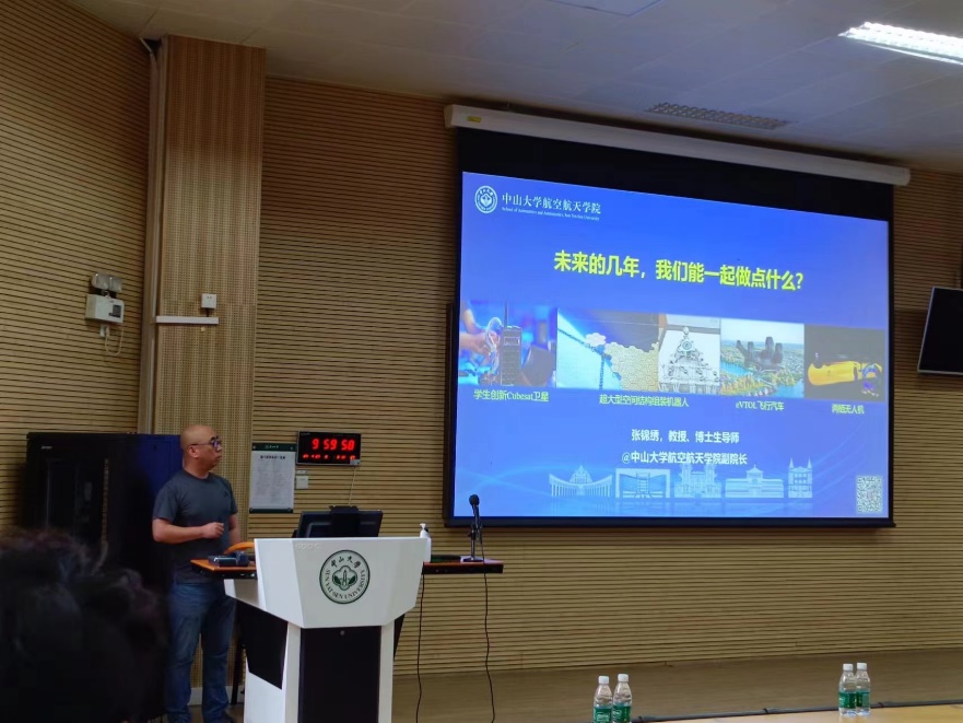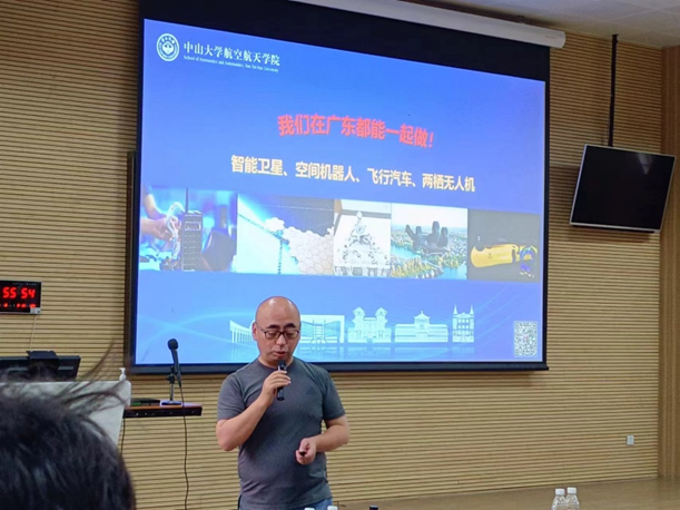 在航空航天产业方面,张锦绣教授向大家介绍了当下的卫星产业链,并向大家分析了目前大湾区卫星及应用产业链的分布,拓宽了同学们的视野。他还进一步分享学院的六大科研领域以及科研方向建设,明确地指出了航空航天广泛的就业方向,以饱满的热情为同学们描述了制造智能卫星、空间机器人、飞行汽车等领域在华南地区的光明前景,并期待与同学们未来可以携手并进。