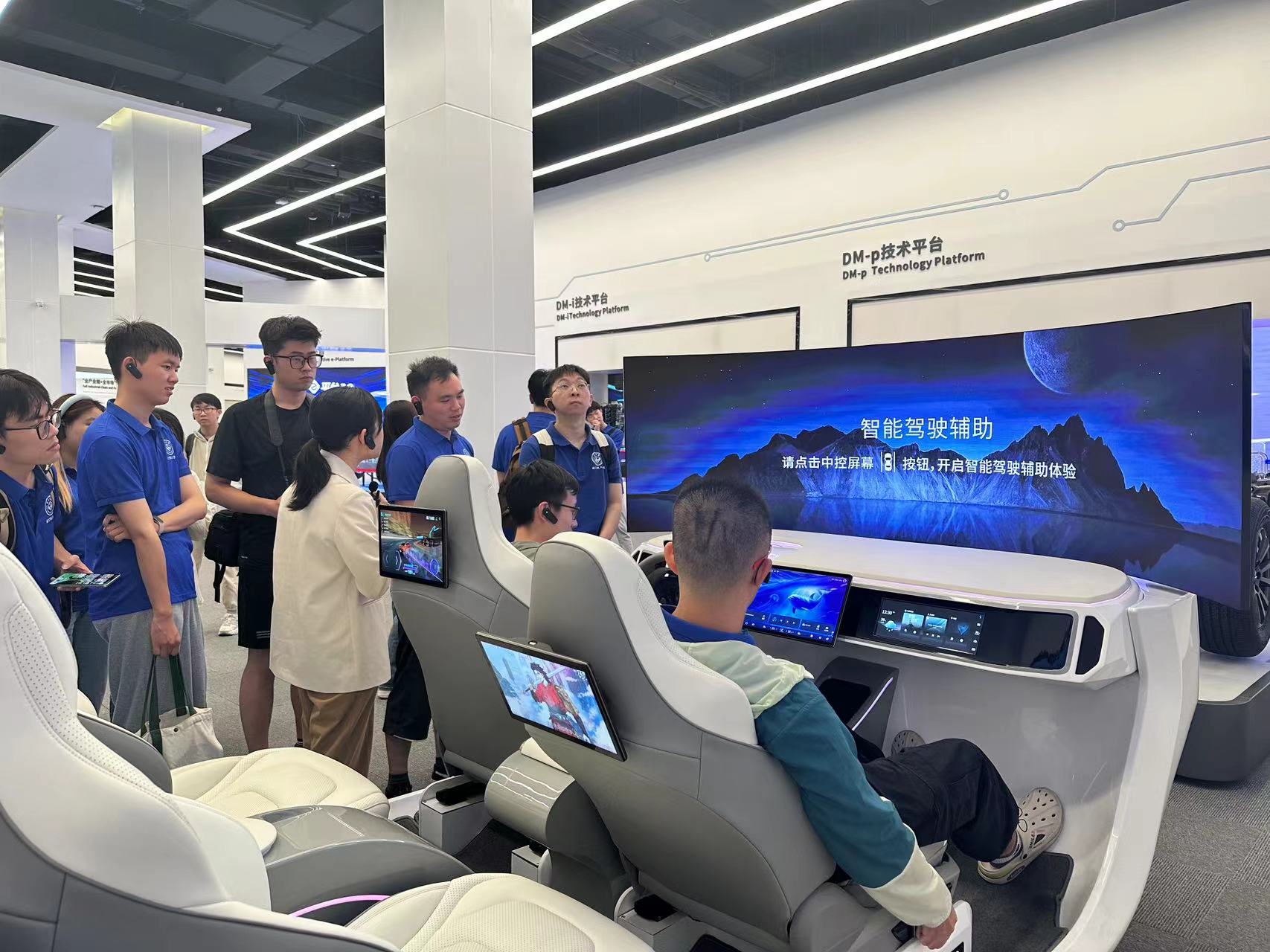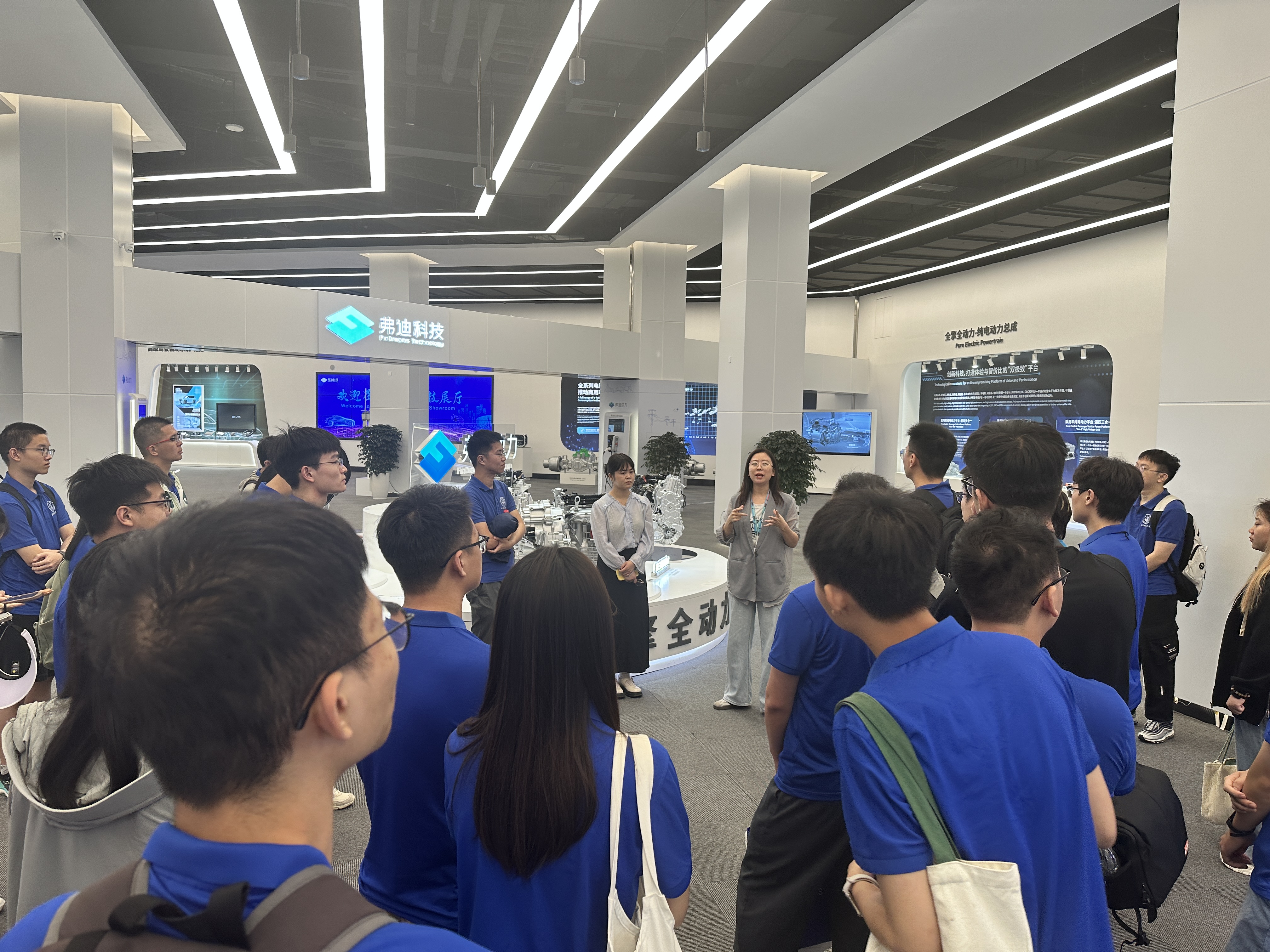 随后,学院师生们参观了技术博览馆。该馆划分为比亚迪电子、弗迪科技、弗迪动力和弗迪电池四大展区,展示了比亚迪的刀片电池、DM混动技术、DiLink智能网联系统、云巴等产品。同学们纷纷表示受益良多。