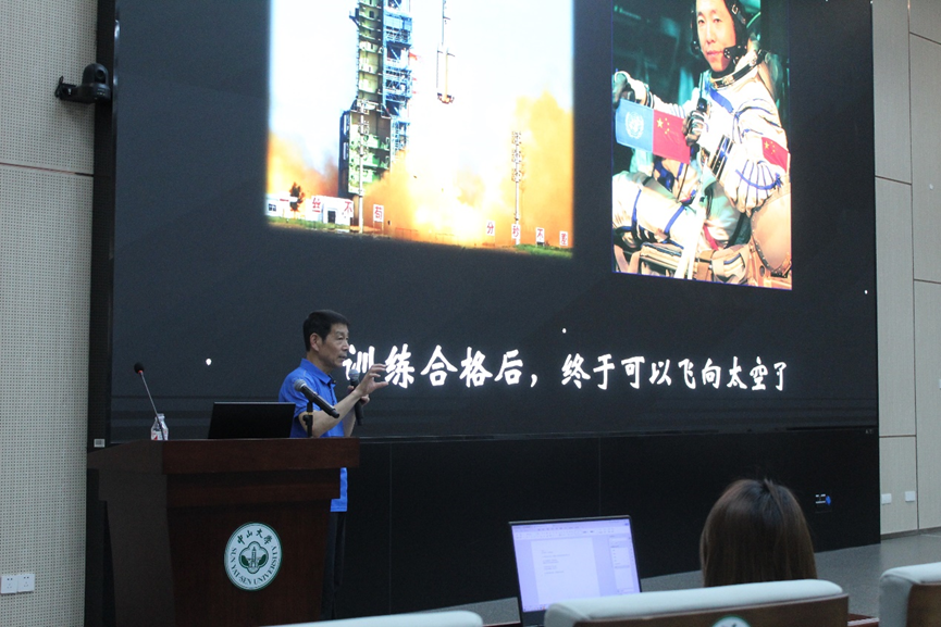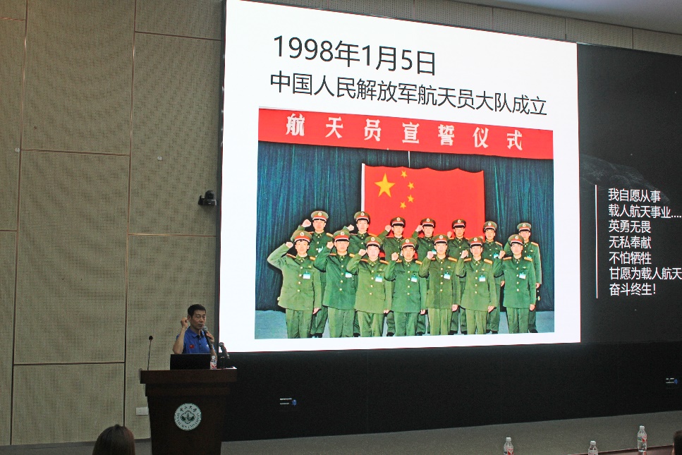 讲座开始,赵传东带领全体师生向国旗宣誓,并分享道:“航天员入队前会庄严地向国旗宣誓,象征着他们对祖国的无限忠诚和对使命的坚定承诺。”