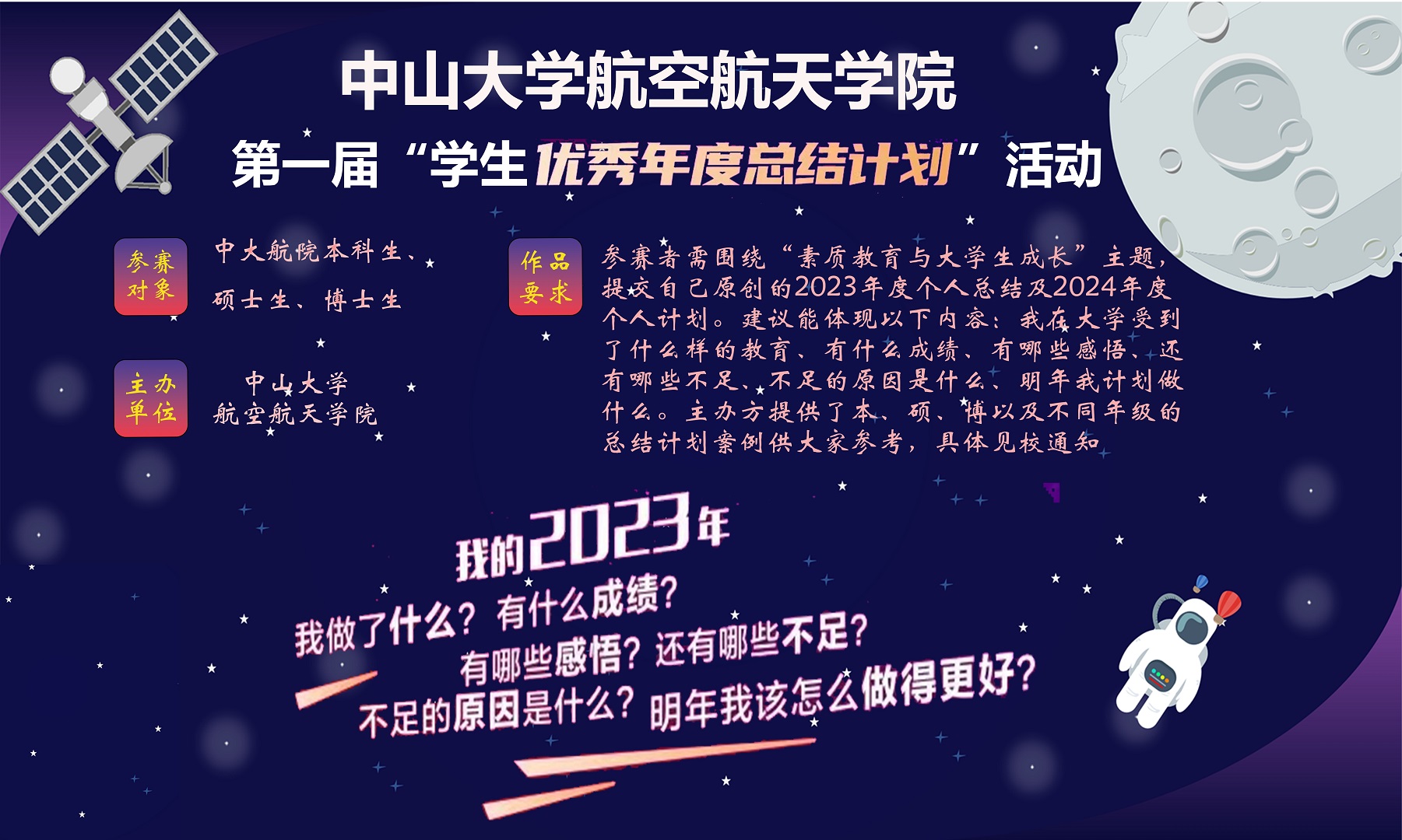 注重“慎独”和“自省”,讲求反思自律、省察克治,每年进行个人年度总结与来年的规划,是当代大学生应该养成的一个优良习惯。为倡导和鼓励学生养成自省与规划的好习惯,44118太阳成城举办“第一届学生优秀年度总结计划”活动。