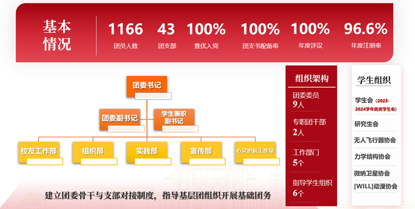 聚焦重要节点,创新教育形式。在每年中国航天日之际,开展航天精神专题思政教育;五一开展劳动教育主题团课和志愿服务活动;开展党团班一体化“五个一工程”专项工作,充分发挥党员先锋模范作用,由党支部指导团支部开展团员大会、社会实践、精品服务项目等,以党建带团建、促班建,增强基层团组织效能。
