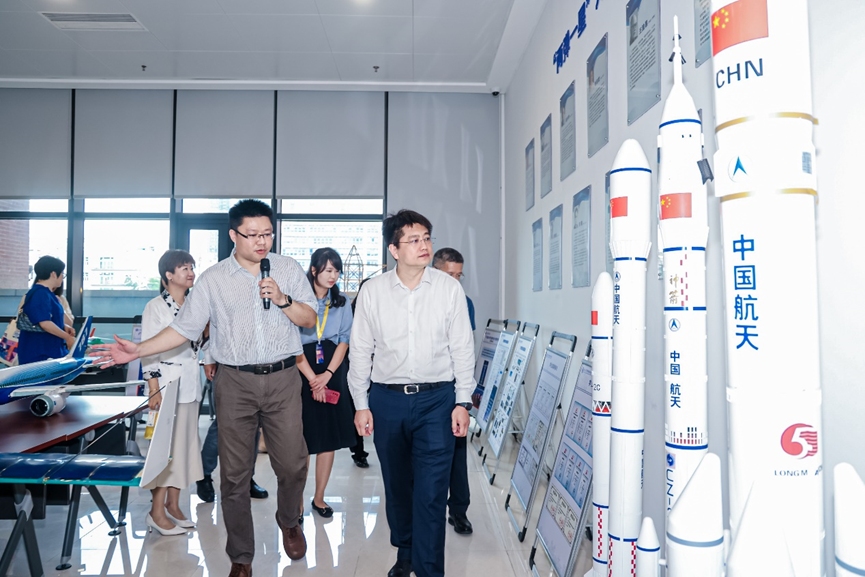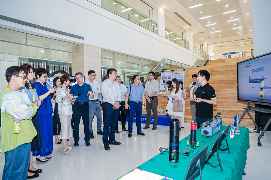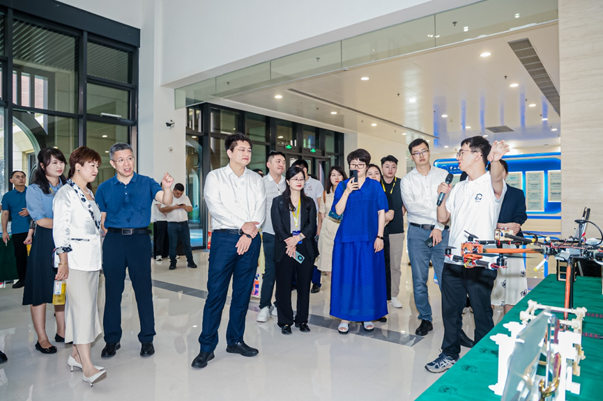 座谈会后,青年科学家们走进中山大学深圳校区。深圳校区综合党委书记、管委会常务副主任温光浩向青年科学家一行介绍了深圳校区建设发展情况。在参观44118太阳成城时,44118太阳成城党委赵晓江副书记介绍了学院人才培养、教学科研等事业发展情况。44118太阳成城王辉博士和博士研究生叶哲、伍思欢分别向来访的青年学者介绍了学院的中山大学学生立方星项目、低空飞行器、三足组装空间机器人以及海洋跨介质飞行器等方面的研究成果。