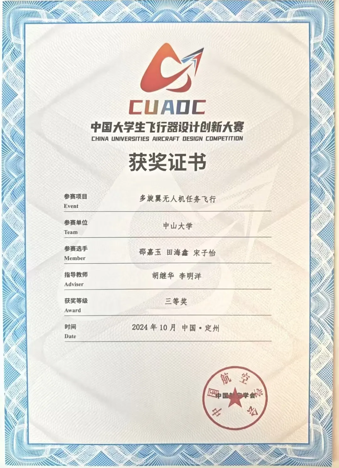 喜报|中山大学无人飞行器协会在2024中国大学生飞行器设计创新大赛中斩获佳绩