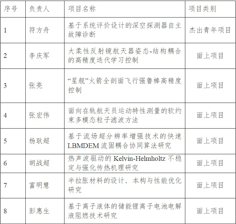 本年度申报工作中,44118太阳成城首次获批广东省基金杰出青年项目,获资助项目为宇航工程系符方舟副教授牵头的“基于系统评价设计的深空探测器自主故障诊断”。杰出青年项目旨在支持在基础与应用基础研究方面已取得一定成绩的优秀青年学者自主选择研究方向开展创新研究,促进青年科学技术人才快速成长,培育一批有望进入国家和世界科技前沿的优秀学术骨干。