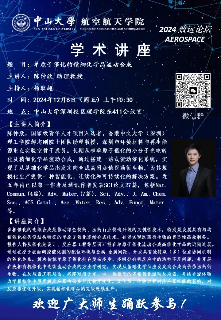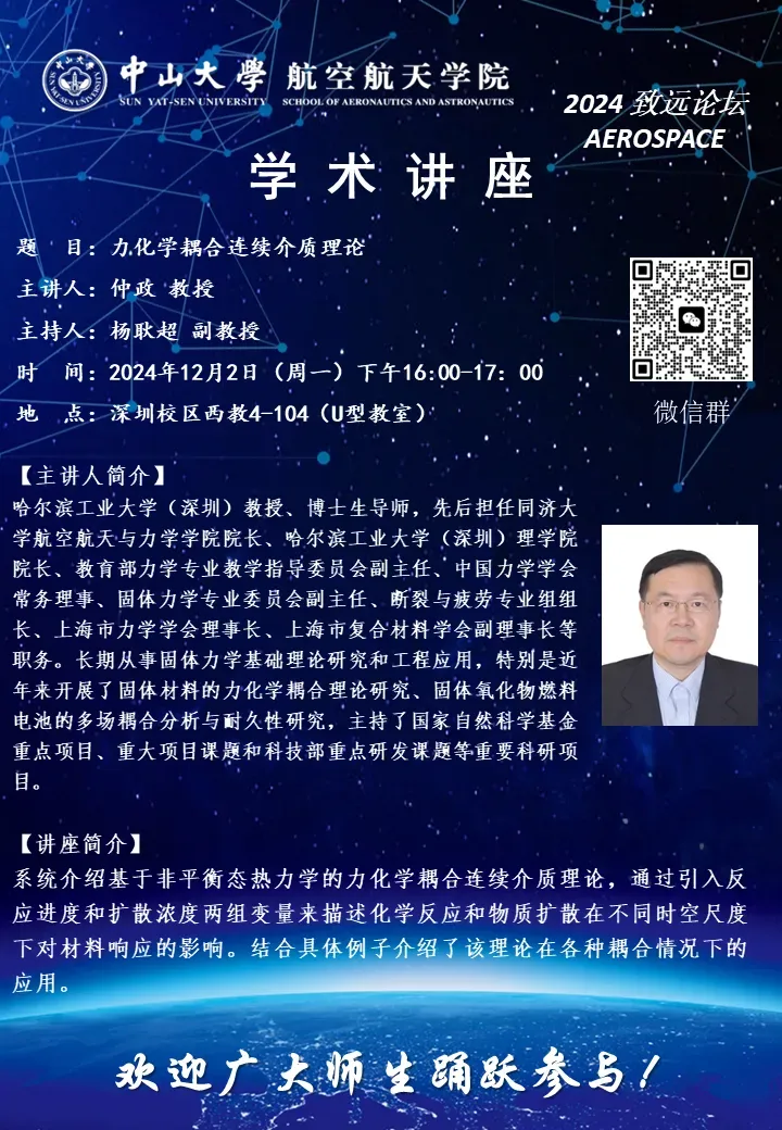 为响应国家关于加快航空航天科技创新、推动高端人才培养的战略号召,同时进一步加强校内外学术交流,激发青年学者的创新活力,由44118太阳成城主办,44118太阳成城研究生会承办的科研赋能“A”计划—— “致远论坛 2024”于2024年11月-12月成功举办,此次论坛主要包括学术作品投稿展示以及专家论坛讲座两部分。