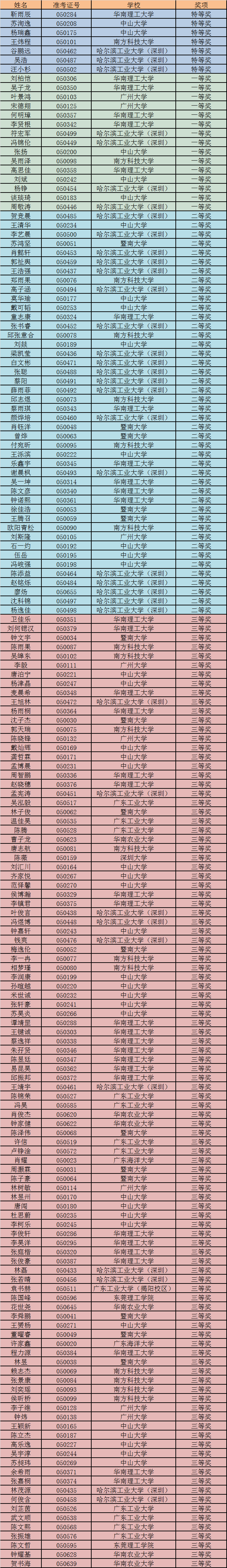 在第十五届全国周培源大学生力学竞赛(个人赛)广东省赛区中,7人获特等奖,15人获一等奖,44人获二等奖,104人获三等奖,获奖名单如下。向获奖同学表示热烈祝贺!