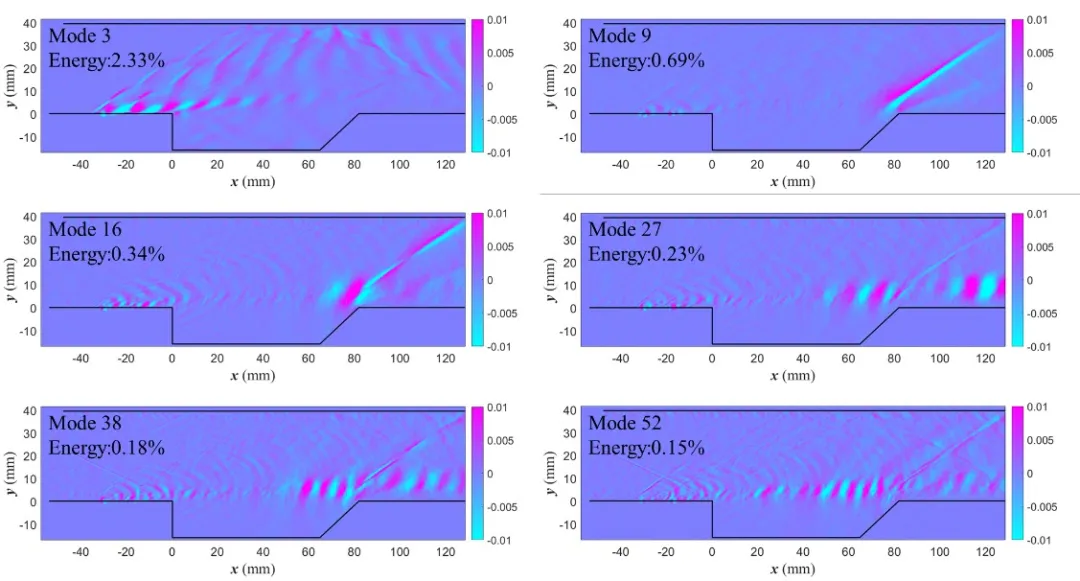 此外,对数据集的POD分析结果表明,等离子体能量沉积显著改变了凹腔流场非定常模态的能量分布,促进了剪切层K-H不稳定性和涡量的提升,并且由于高频放电的强迫,非定常模态的主导频率也被调控至放电频率。