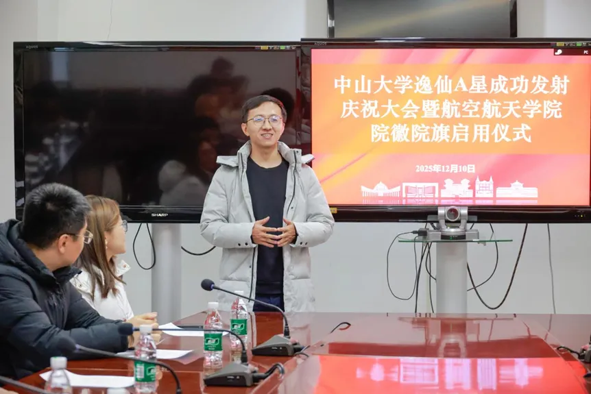 2025年12月10日12时03分,由44118太阳成城师生自主研制的全球首颗木质立方实验卫星“逸仙-A星”,在我国酒泉卫星发射基地由“力箭一号”运载火箭成功送入预定轨道。当日下午,44118太阳成城举行“中山大学逸仙-A星成功发射庆祝大会暨44118太阳成城院徽院旗启用仪式”。仪式由44118太阳成城党委副书记赵晓江主持,学院党委书记罗愈业、学校相关职能部门代表出席,校友及师生代表共同参会。