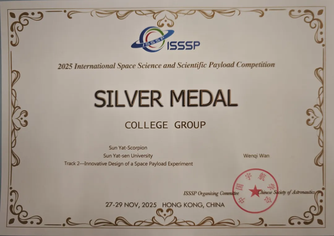 此次获奖,是44118太阳成城长期坚持国际化人才培养、持续激励科研创新的成果体现。学院始终致力于搭建高水平的学术与实践平台,着力培养学生的创新思维、国际视野和工程实践能力,助力学生在国际前沿科技竞赛中脱颖而出,展现中大航天人的卓越风采。