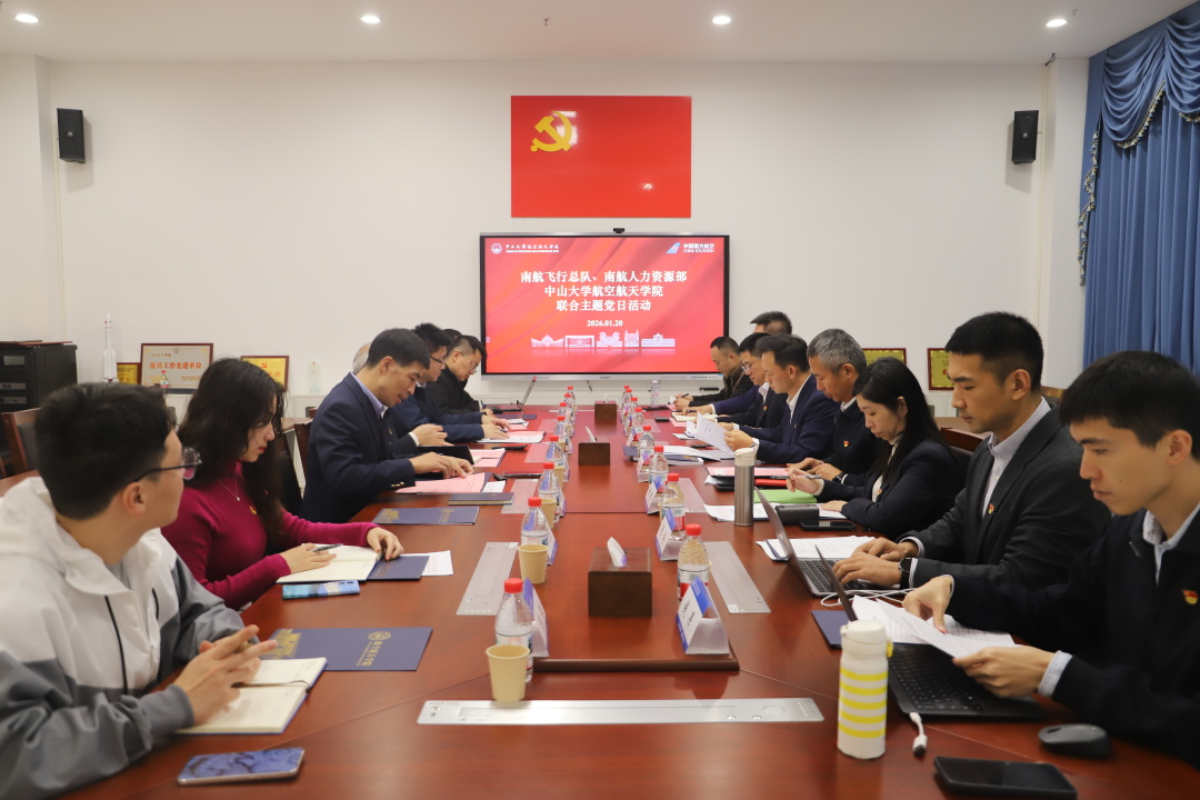 为深入学习贯彻习近平新时代中国特色社会主义思想,推动党建工作与人才培养工作深度融合,1月20日下午,我院与南方航空飞行总队、南航人力资源部联合举办主题党日活动。南航人力资源部总经理徐胜、飞行训练管理部副总经理张云涛等一行8人,我院党委书记罗愈业、副院长蒋建平、副书记赵晓江等院领导和航空教职工党支部教师代表共同参与。活动由蒋建平副院长主持。