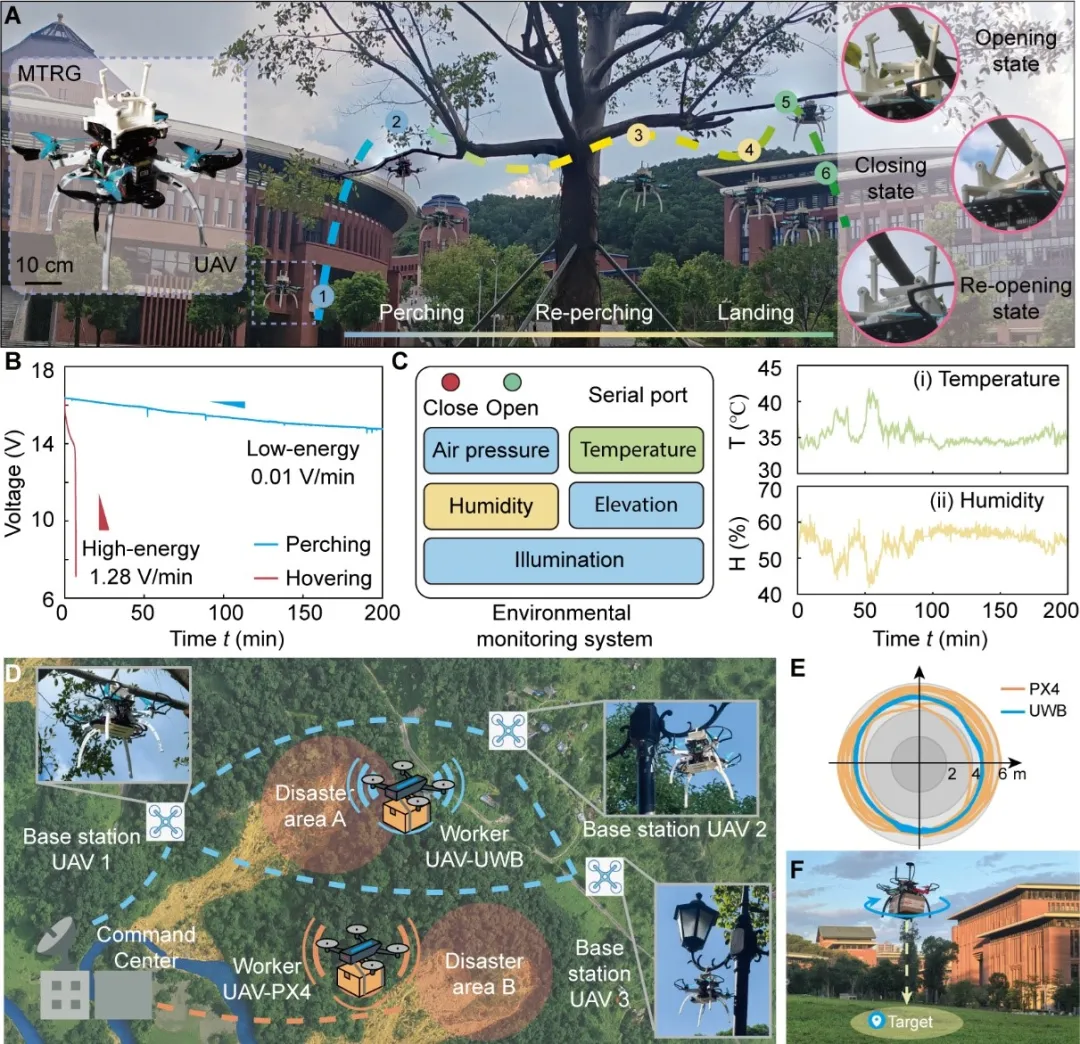 无人机平台验证多场景应用:成功实现树枝停靠、环境监测、高精度定位网络构建及精准物资投送等任务。