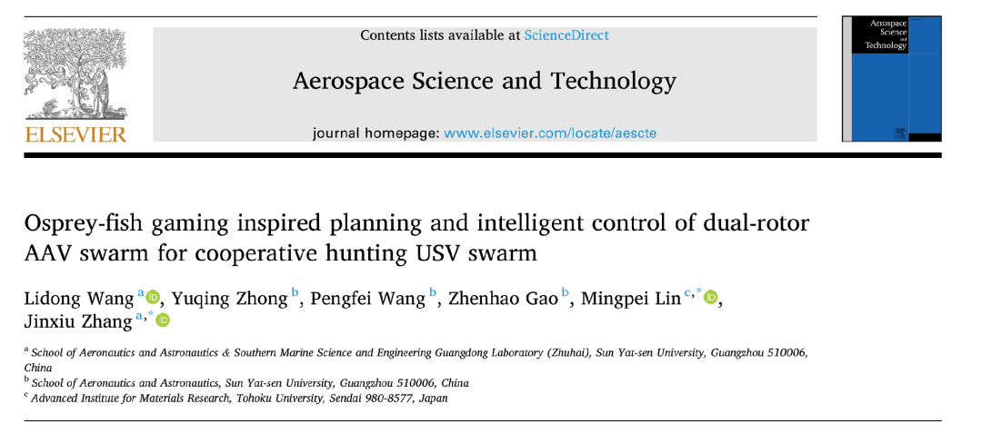 Wang L, Zhong Y, Wang P, et al. Osprey-Fish Gaming Inspired Planning and Intelligent Control of Dual-rotor AAV Swarm for Cooperative Hunting USV Swarm[J]. Aerospace Science and Technology, 2026: 112008.