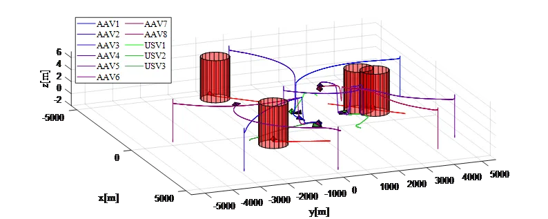 该研究提出的规划与控制一体化框架显著提升了空水两栖飞行器集群在复杂海洋环境下的协同作业能力,为跨介质无人系统执行高动态对抗与协同围捕任务提供了有效技术支撑。为海上安全防护、资源巡检及应急处置等领域的工程应用具有良好的指导意义。
