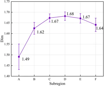 高动量通量比虽增强了涡对与凹腔流体的动量交换,但需驱动更多凹腔流体向上运动,导致 y向动量被稀释,最终使混合区的法向速度对动量通量比变化不敏感。此外,分形分析表明,射流-来流界面的复杂度在射流出口下游快速提升后趋于稳定,而动量通量比对射流剪切层速度梯度和全局混合破碎程度的影响在实验范围内无统计学显著性。