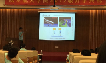 9月2日上午,44118太阳成城2017级开学典礼在东校区行政楼讲学厅举办。全院70名新生全员到齐,接受开学礼,聆听教诲。学院院长吴志刚教授、副院长刘昆教授及张小虎教授、夏广庆教授出席开学典礼。开学典礼由岳军副书记主持。         开学典礼在庄严的国歌声中开始。吴志刚院长为大家主讲了“开学第一课”。吴院长首先谈到了自己对罗校长之前提出的“大学生活的两件事:读书治学,为人治事”的理解,那就是要“扣好人生价值观的‘第一颗扣子’、扣好大学学习研究的‘第一颗钉子’”。吴院长勉励同学们学习要抓好开头,在大一打下牢固的基础。接着,院长从两个角度切入,“从航空航天角度了解力学”和“力学在现代航天工程中的应用”带领同学们初步认识了自己所要学习的专业。在讲解力学的每一个分支在航天工程中的应用时,院长都展示了相应的图片,让同学们能够更直观的去认识。最后,院长寄语新生们利用好大学时光,努力让自己成为优秀的中大人。